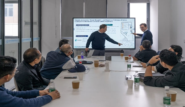 2025年12月11日-13日,世界500强马来西亚国家石油公司(以下简称“马石油”)技术、商务团队陪同CarbonStrike(PETRONAS Carbon Capture Technology Division)团队到访南京中科碧盾新膜科技有限公司(以下简称“中科碧盾”)。马石油将CCUS定位为公司的战略业务,此次访问,考察了公司技术开发和生产能力,并就中科碧盾膜接触反应器(下称PTFE-MBC)碳捕集技术在加拿大落地的应用合作,进行了全面深入的交流。